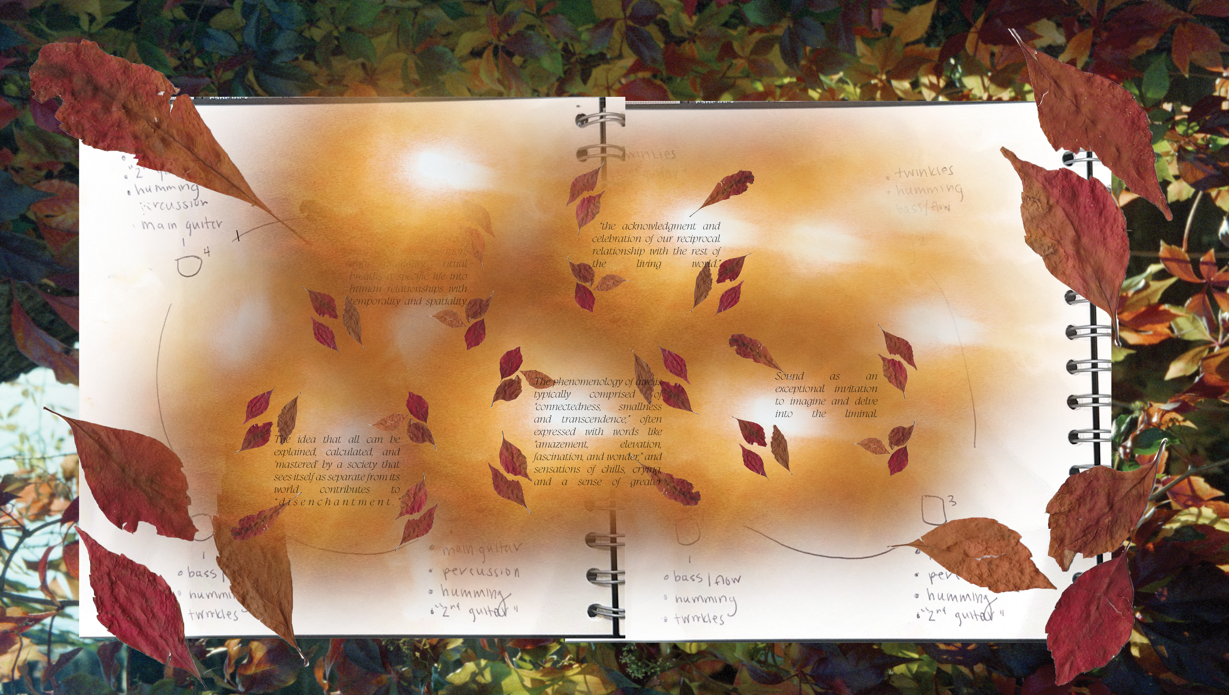 A site-specific sonic-visual installation beginning a year-long exploration of enchantment in relation to natural spaces, rhythms, and stories. This piece collaborates with its environment, combining natural soundscapes with an original musical score. Listen to the Leaves works with themes of seasonality and asks its audience to consider the intertwining of internal and external rhythms.